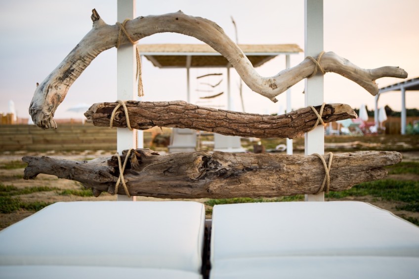 Abbiamo raccolto i rami che da queste parti la tramontana porta in abbondanza sulle spiagge. I rami sono diventati parte dei “rifugi”, degli spazi intimi e allo stesso tempo aperti, dove gli ospiti del lido si sentono un tutt’uno col paesaggio intorno e dove possono godere della bellezza della natura senza disturbarla.